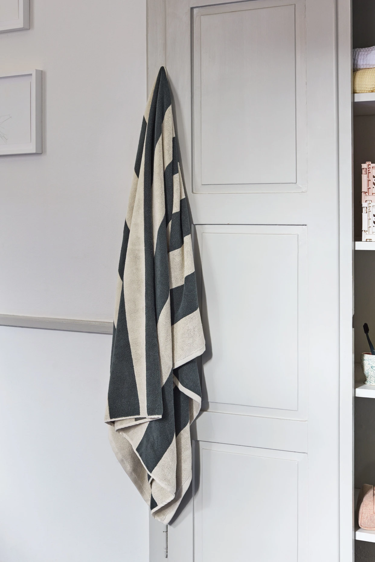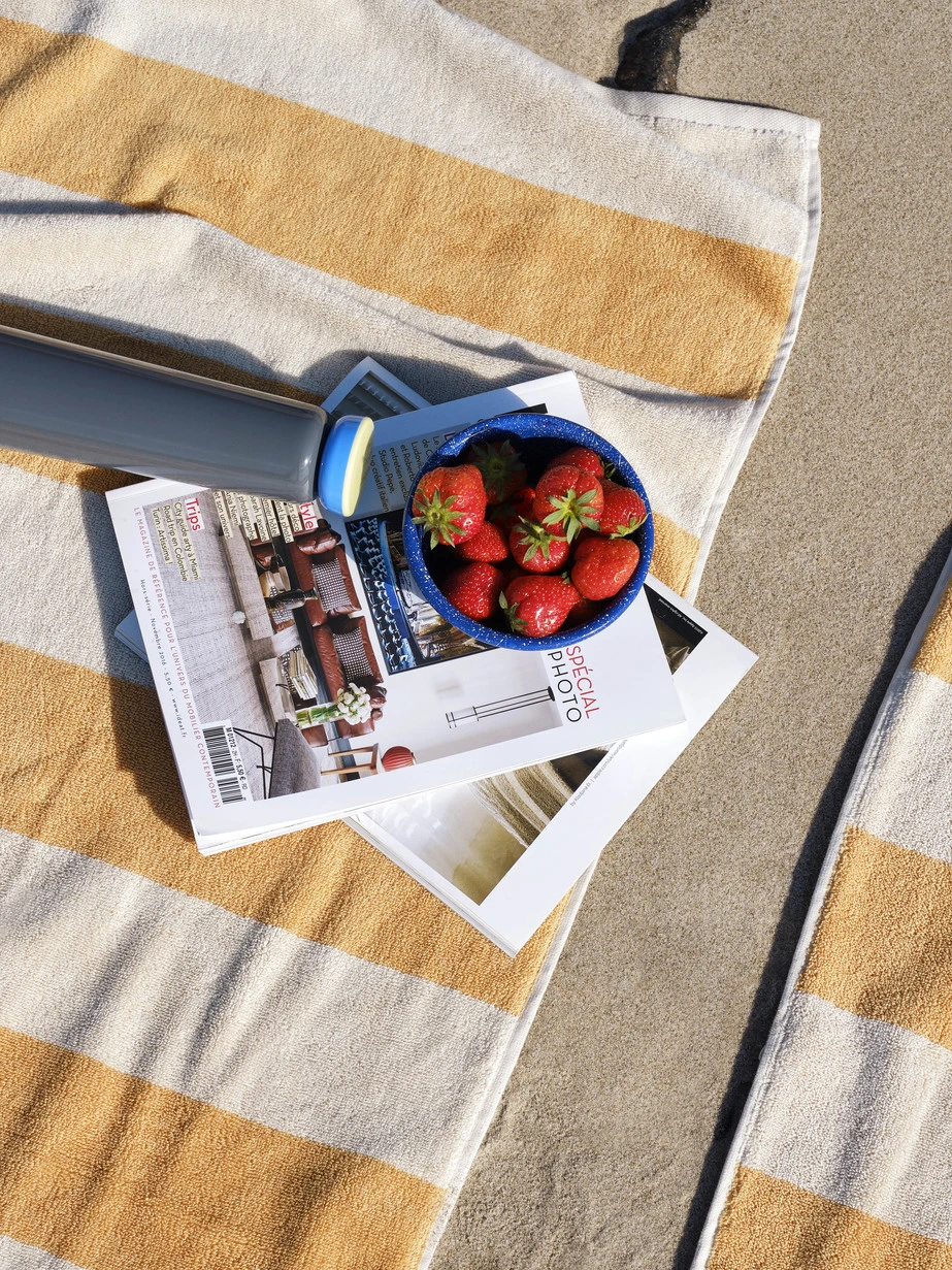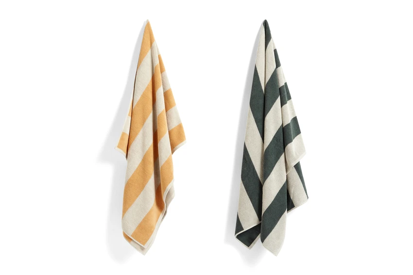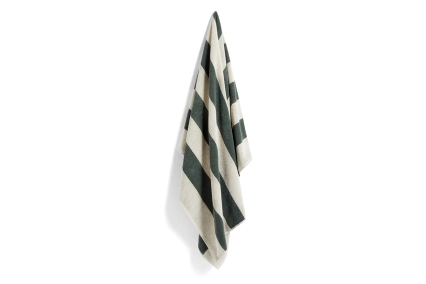 Crafted in soft, absorbent cotton, the Frotté Striped towel is designed by Amanda Borberg for Hay and features horizontal stripes in muted colours.