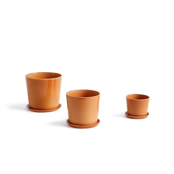De Botanical Family collectie van het Deense merk Hay bestaat uit een serie bloempotten van messing en keramiek met bijpassende schotels. Combineer de verschillende maten en kleuren om je favoriete planten een leuke plek te geven in huis. Materiaal: keramiek Afmetingen: Ø18 x H16 cm Kleur: Caramel Schotels worden apart verkocht! HAY staat voor betaalbaar Deens design van tafels tot blocnotes. Het merk werd in 2002 opgericht door Rolf Hay en zijn vrouw Mette met de ambitie om terug te keren naar de hoogdagen van het Deens design uit de jaren 50 et 60. Wat wij zo leuk vinden is het tijdloze karakter van de ontwerpen en de mogelijkheid om zelf de look van je meubel te bepalen: verschillende afmetingen, de afwerking van het hout en heel veel kleuren en stoffen.