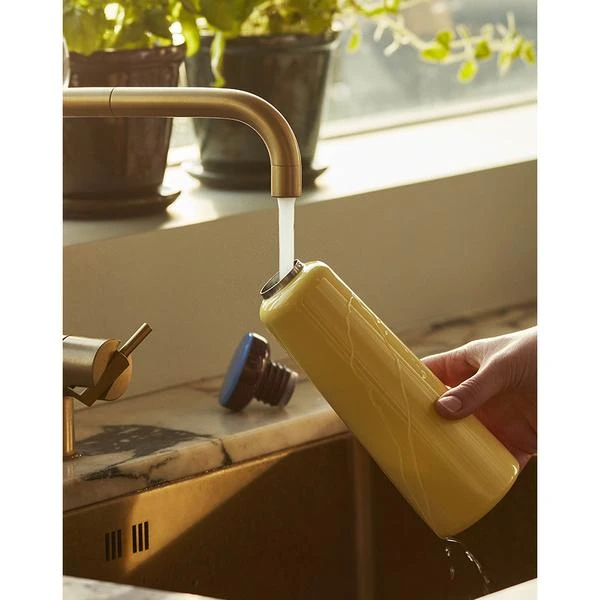 La bouteille thermos Sowden jaune (0,35 L) de chez Hay. Elle convient pour les boissons chaudes et froides ♥ La bouteille isotherme Sowden jaune de 0,35 L est le fruit d’une collaboration entre le designer Georges Sowden et la marque Hay. Cette gourde dont le design s’inspire du mouvement Memphis vous permettra de transporter vos boisons chaudes pendant 12 heures et vos boissons froides pendant 24 heures dans vos déplacements du quotidien. Le designer Georges Sowden est une figure iconique du mouvement Memphis. Existe également en couleur rose, bleu et en plus grand format ici (0,5L). L’avis de l’Atelier Kumo : Un compagnon utile et élégant dans vos déplacements du quotidien ! Dimensions : diamètre : 7 cm, hauteur : 26 cm Composition : acier inoxydable et polypropylène Couleur : jaune Contenance : 35 cl Poids : 0.350 kg Conseil : convient pour les boissons chaudes et froides De part ses lignes élancées et ses couleurs tendances cette jolie bouteille Thermos Sowden égaillera votre quotidien. Le corps de la bouteille Thermos est en acier inoxydable. Son bouchon à vis en polypropylène assure une étanchéité parfaite du produit.