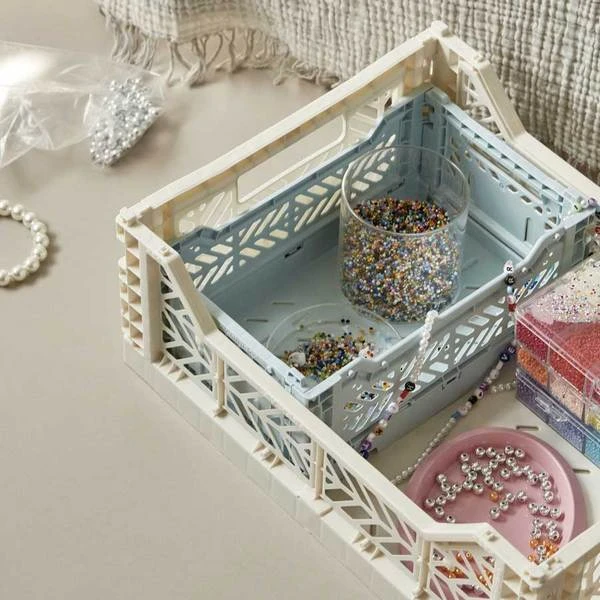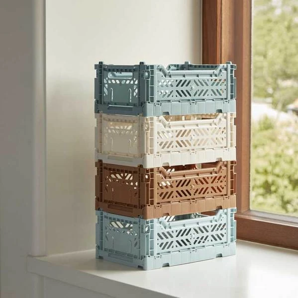 La cagette en taille S, couleur bleu glace de la marque Hay ♥ En plus d’être design, ces cagettes en polypropylène sont multifonctions. Elles ont un système d’aération, qui leur permettent de résister à l’eau. Repliables sur elles-mêmes, elles peuvent aussi bien s’empiler. Elles s’intègreront parfaitement dans toutes les pièces de votre intérieur et peuvent servir aux petits comme aux grands. Découvrez toute la gamme de cagettes Hay. L’avis de l’Atelier Kumo : un indispensable pour organiser votre intérieur et un nouveau coloris qu’on adore ! Dimensions : longueur : 26,5 cm, largeur : 17 cm, hauteur : 10,5 cm Composition : polypropylène Poids : 180 g