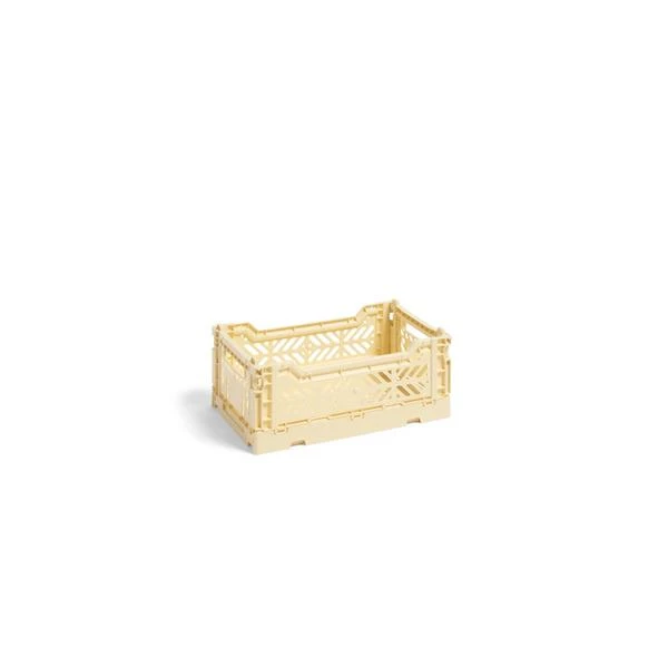 La cagette jaune de taille petite, de la marque Hay ♥ En plus d’être design, ces cagettes en plastique sont multifonctions et ont un système d’aération, qui leur permet de résister à l’eau. Repliables sur elles-mêmes, elles peuvent aussi bien s’empiler. Elle peuvent servir aux petits comme aux grands. Disponibles en différentes couleurs, n’hésitez pas à les combiner. Découvrez toute la gamme de cagettes Hay. L’avis de l’Atelier Kumo : Un indispensable pour organiser votre intérieur Dimensions : Longueur : 26,5 cm, largeur 17, hauteur : 10,5 cm Composition : Plastique