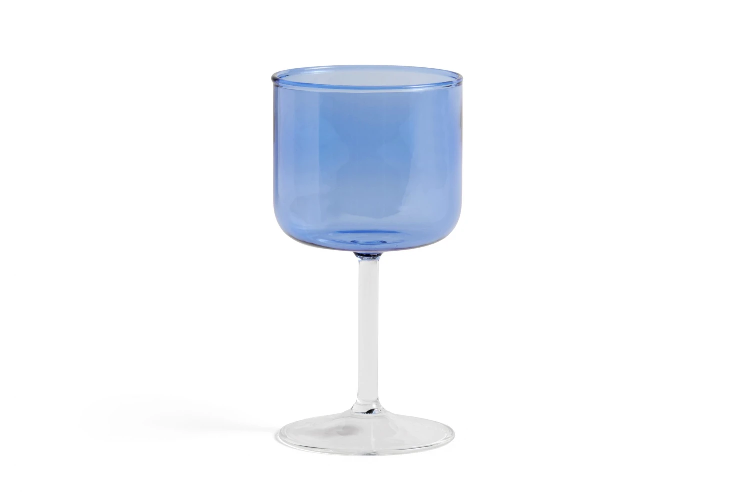 Calice in vetro blu trasparente con base trasparente la confezione prevede due calici