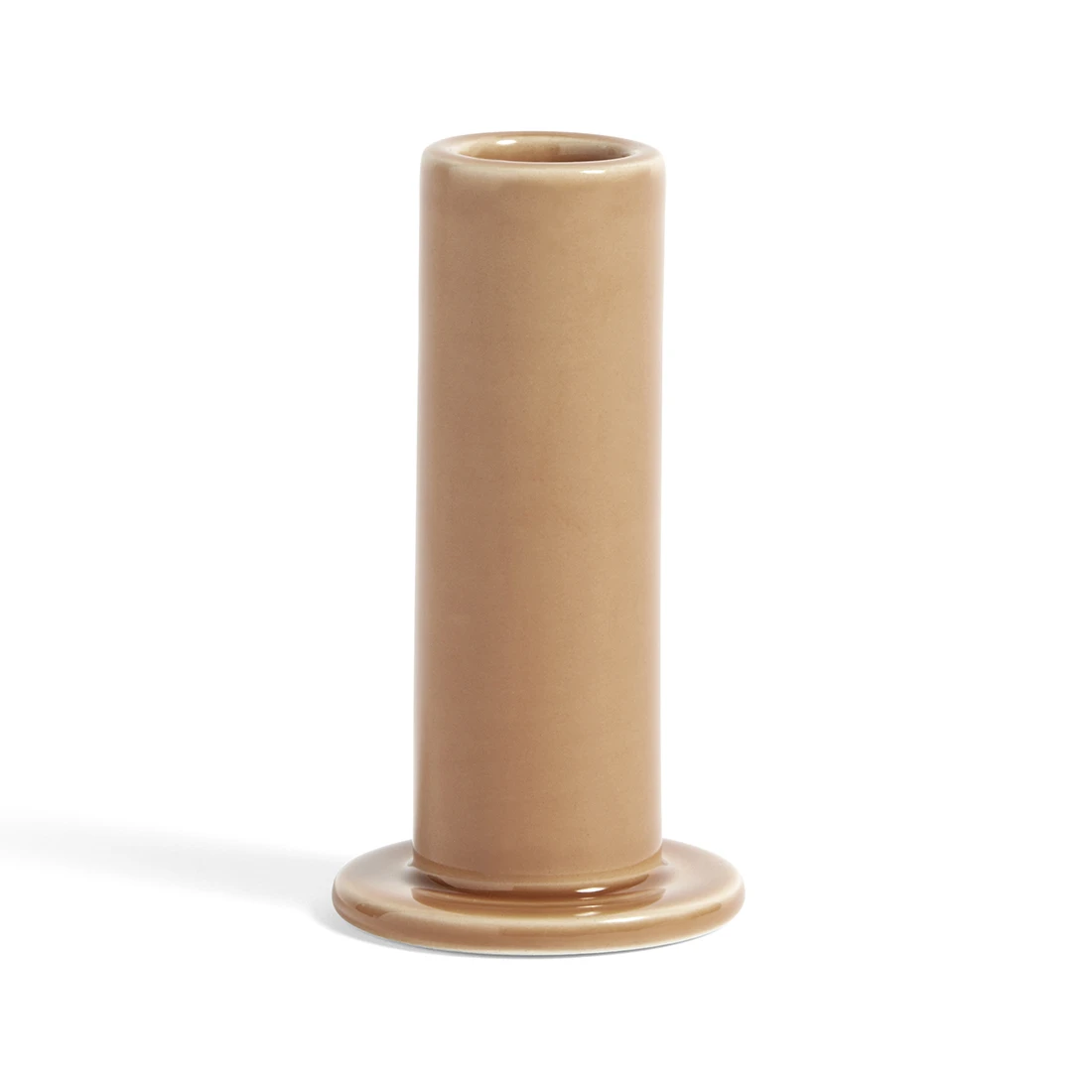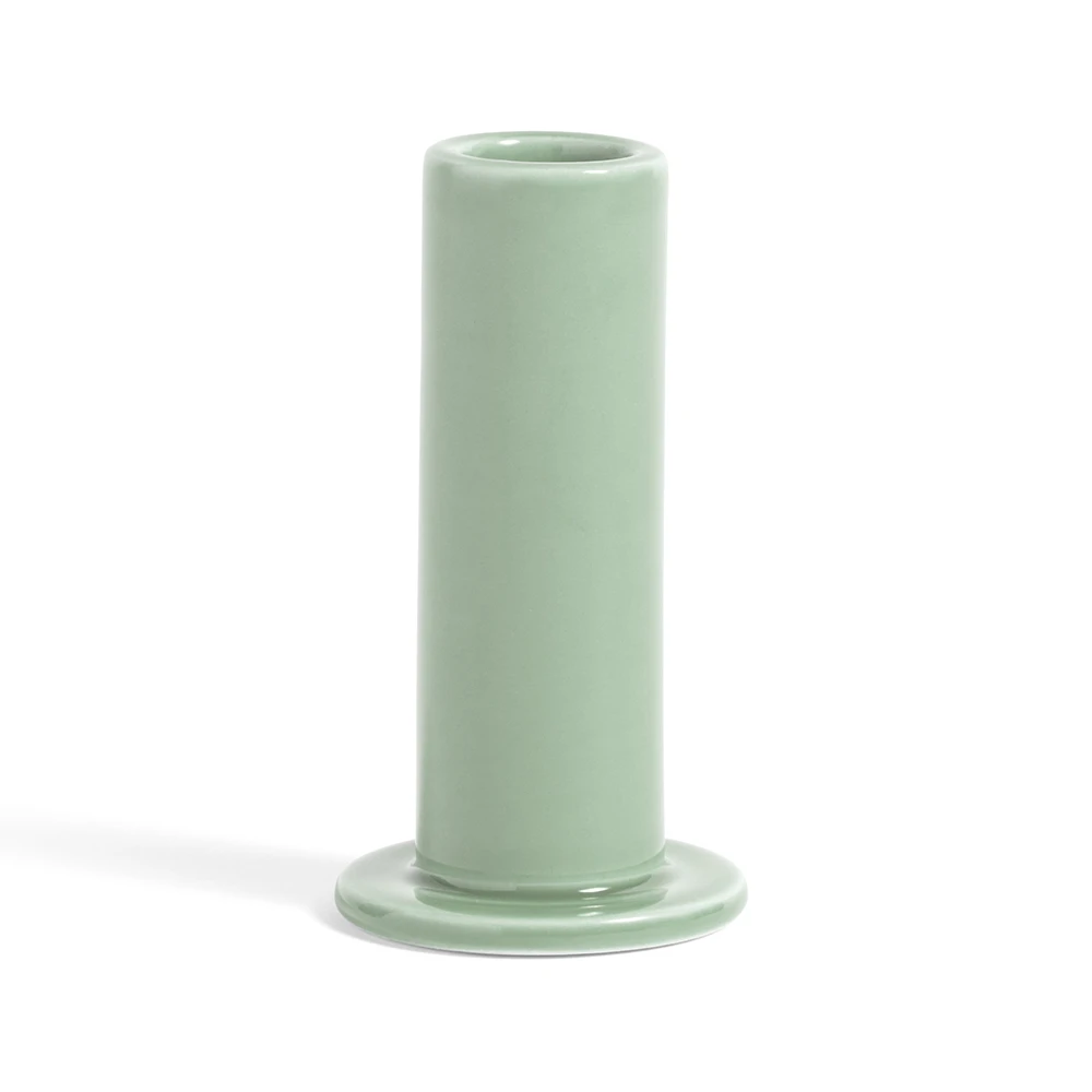 Portavelas HAY de loza con un esmalte semitransparente en colores suaves. Diseño tubular con una base que recoge la cera. Bello y minimalista, queda bien combinado con otros colores y/o tamaños y también sólo.