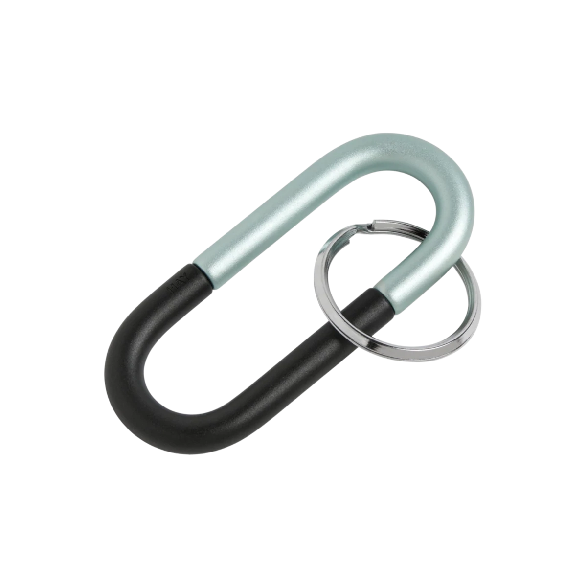 The HAY Cane Key Ring in Black. Perfect for keys with a functional snap hook to allow it to be clipped on to belts or bags. Made in a durable aluminium, this stylish piece is finished with a two tone coloured coating. Materials Aluminium Dimensions W9 × D3.5 cm