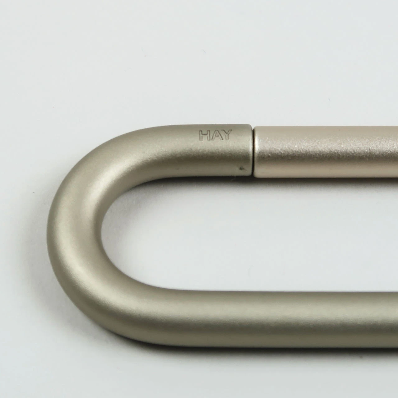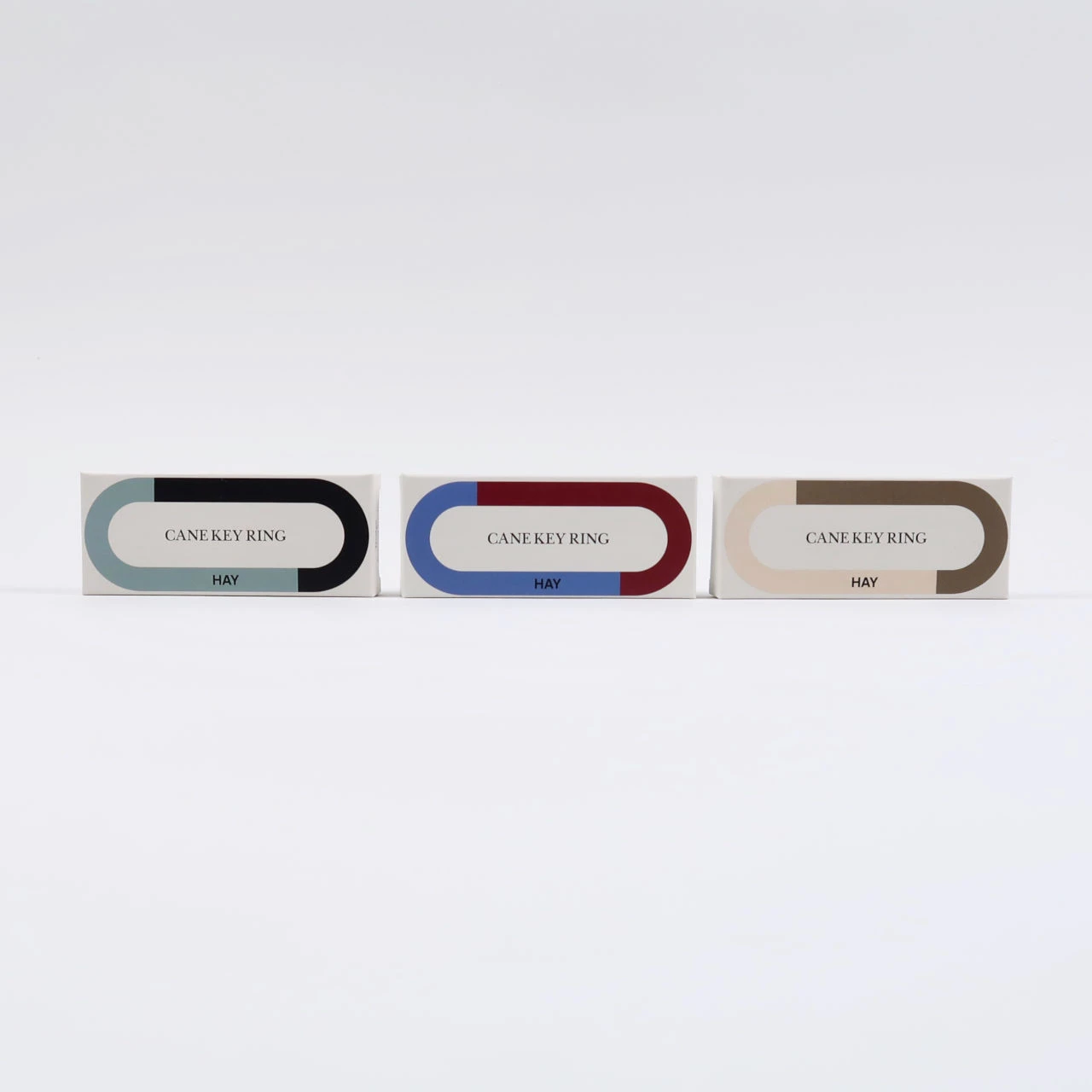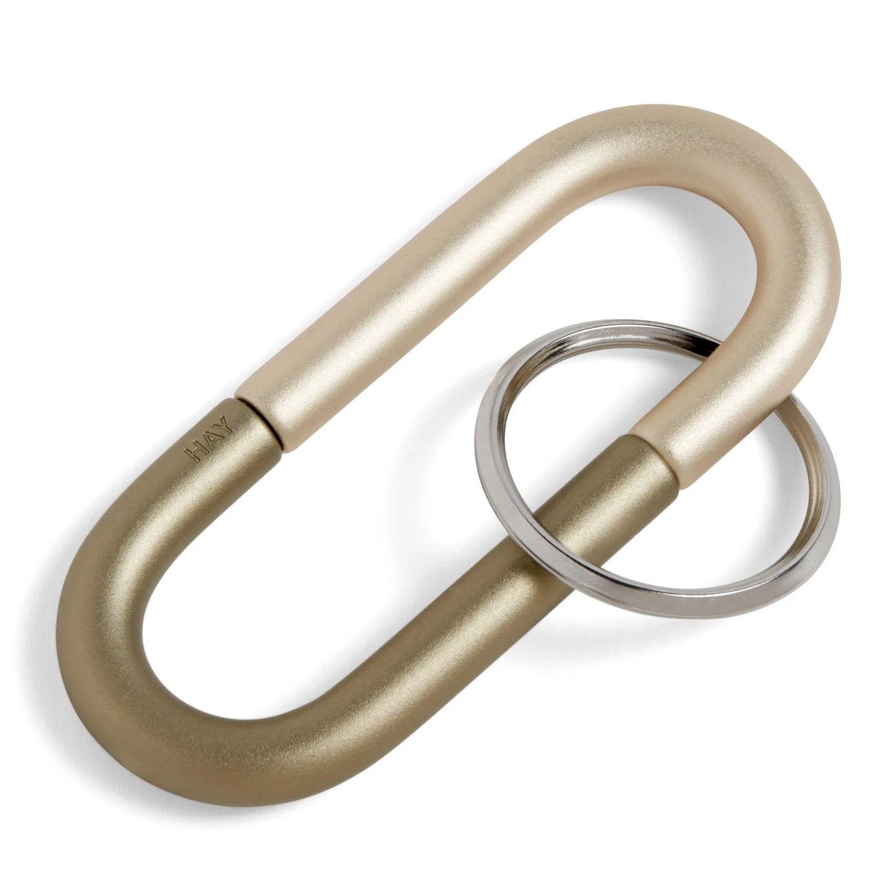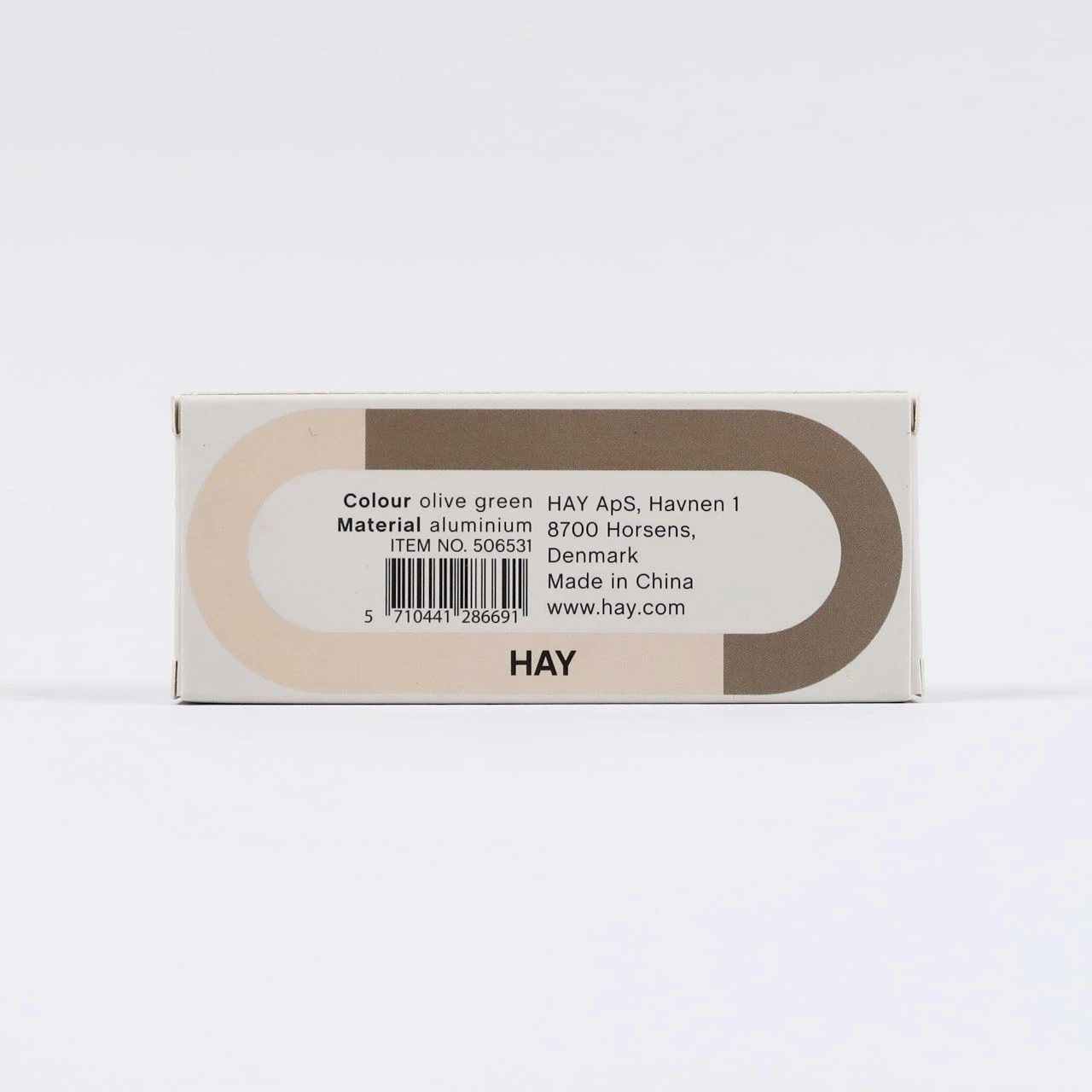 These loop form keyrings are made from aluminium by HAY and come in three different colour variations: black, olive green and red. Although the colours are listed like this each keyring is actually bi-colour.