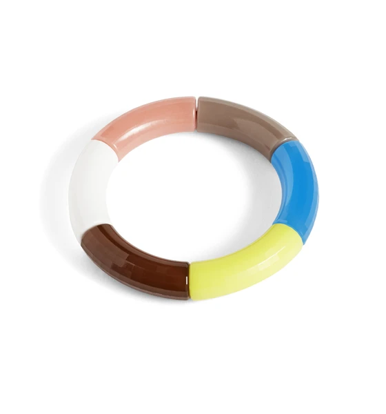 Kyoto Tango’s edition of colour-blocked resin bracelets fuses muted and strong tones to create a unique and versatile accessory. Designed and produced in Denmark, the bracelets can be worn individually or stacked beautifully together. 8 x 1 cm Material: Resin, Elstane