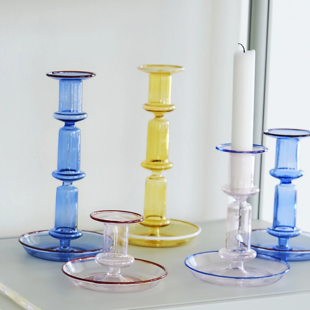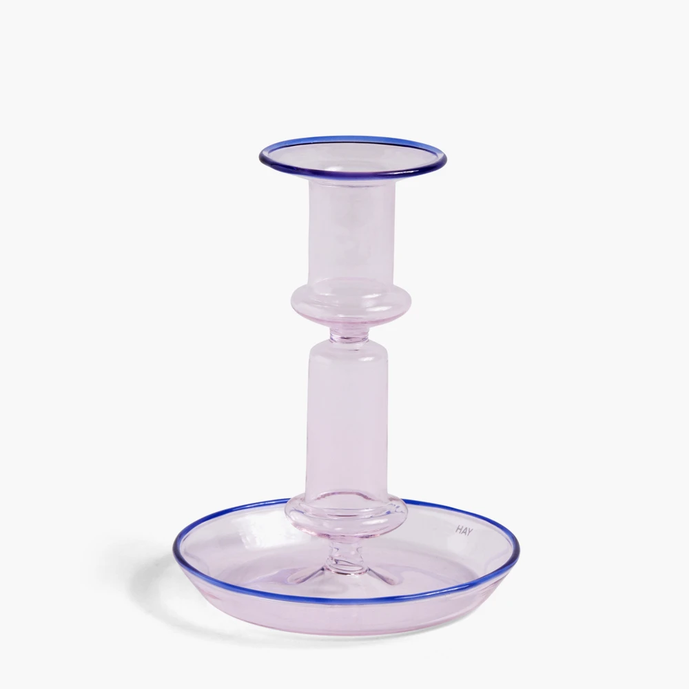 Flare Candleholder from HAY is crafted out of colored, mouth-blown glass and features tinted rims that catch the eye.