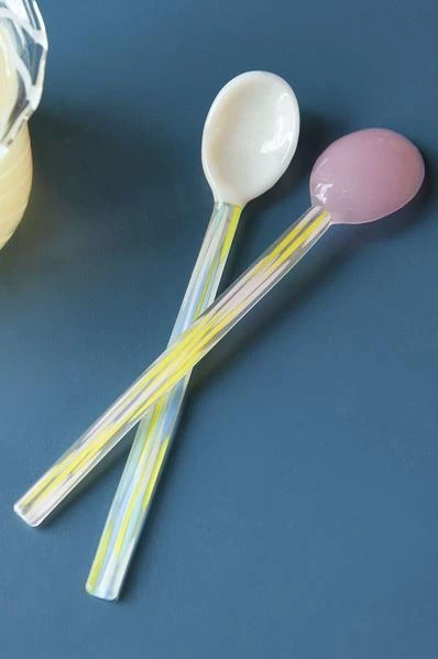 HAY’s collection of Glass Spoons add a decorative twist to a kitchen essential. Handmade in elegant designs offering different colours, sizes, and shapes, the spoons can be used for spices, salt, tea/coffee, or purely for decoration. They come in packs of two in complementary colours. These are the mixed coloured white and light pink duo which have a multi-coloured handle design. Set of 2 L15 X W2.5 cm 541009