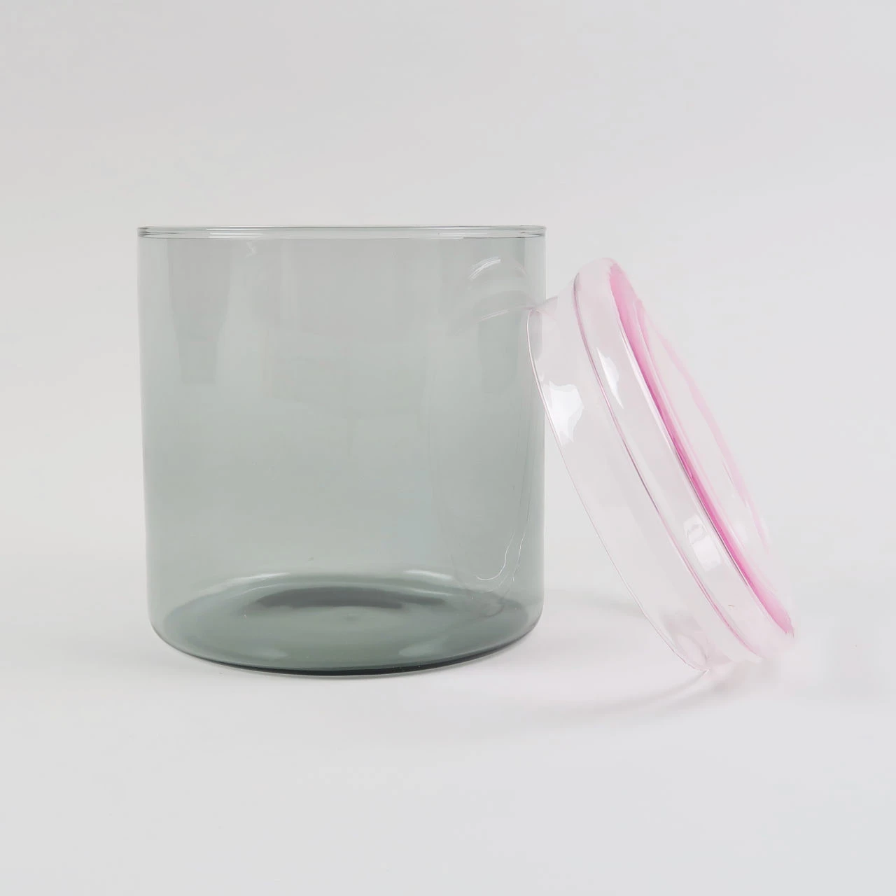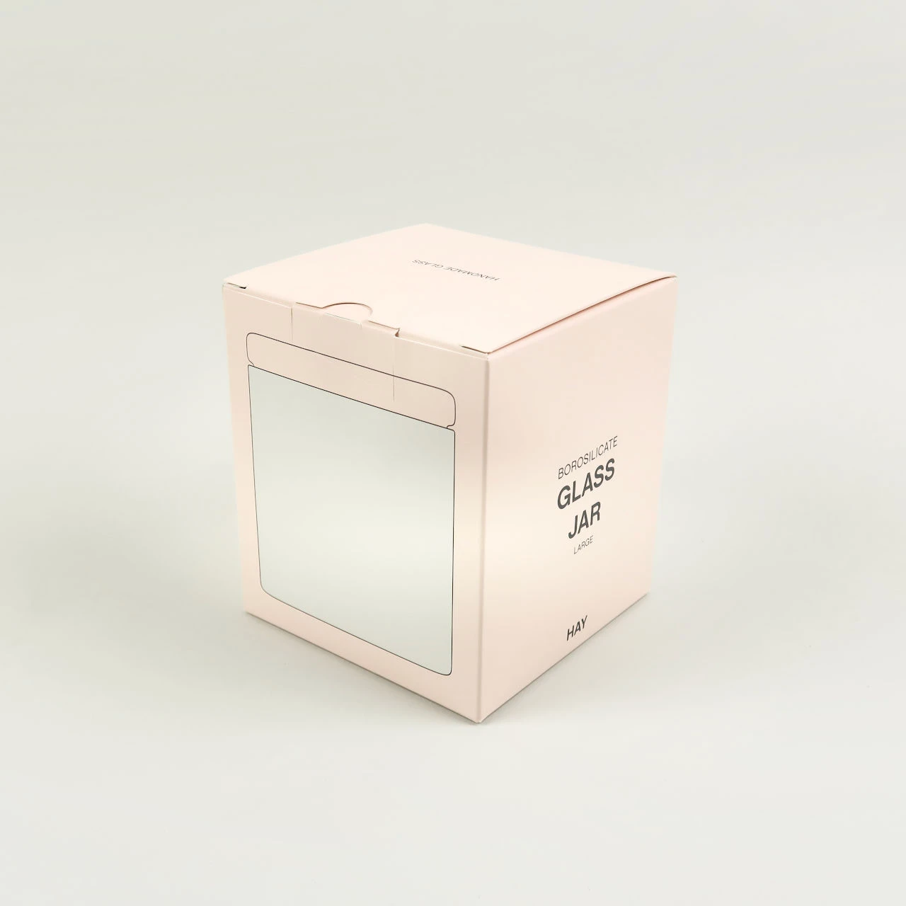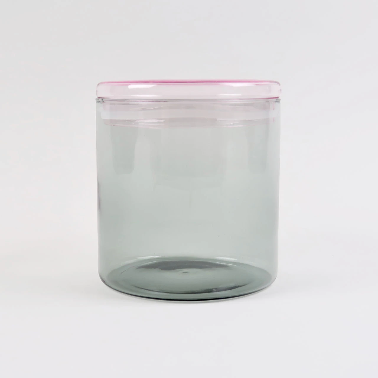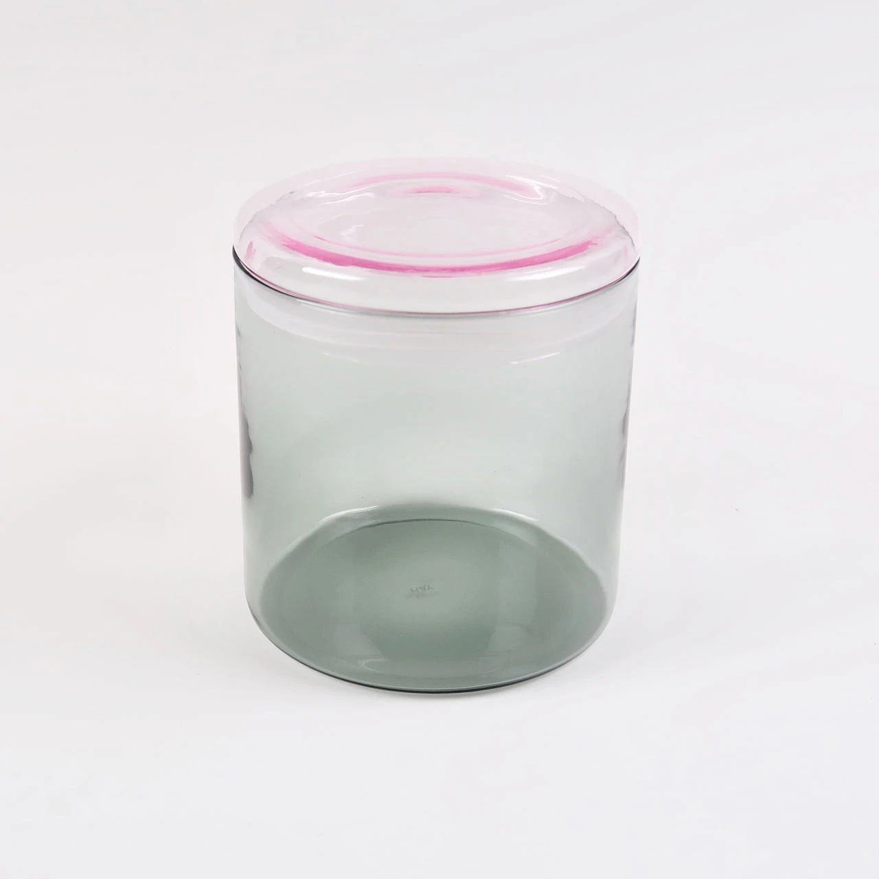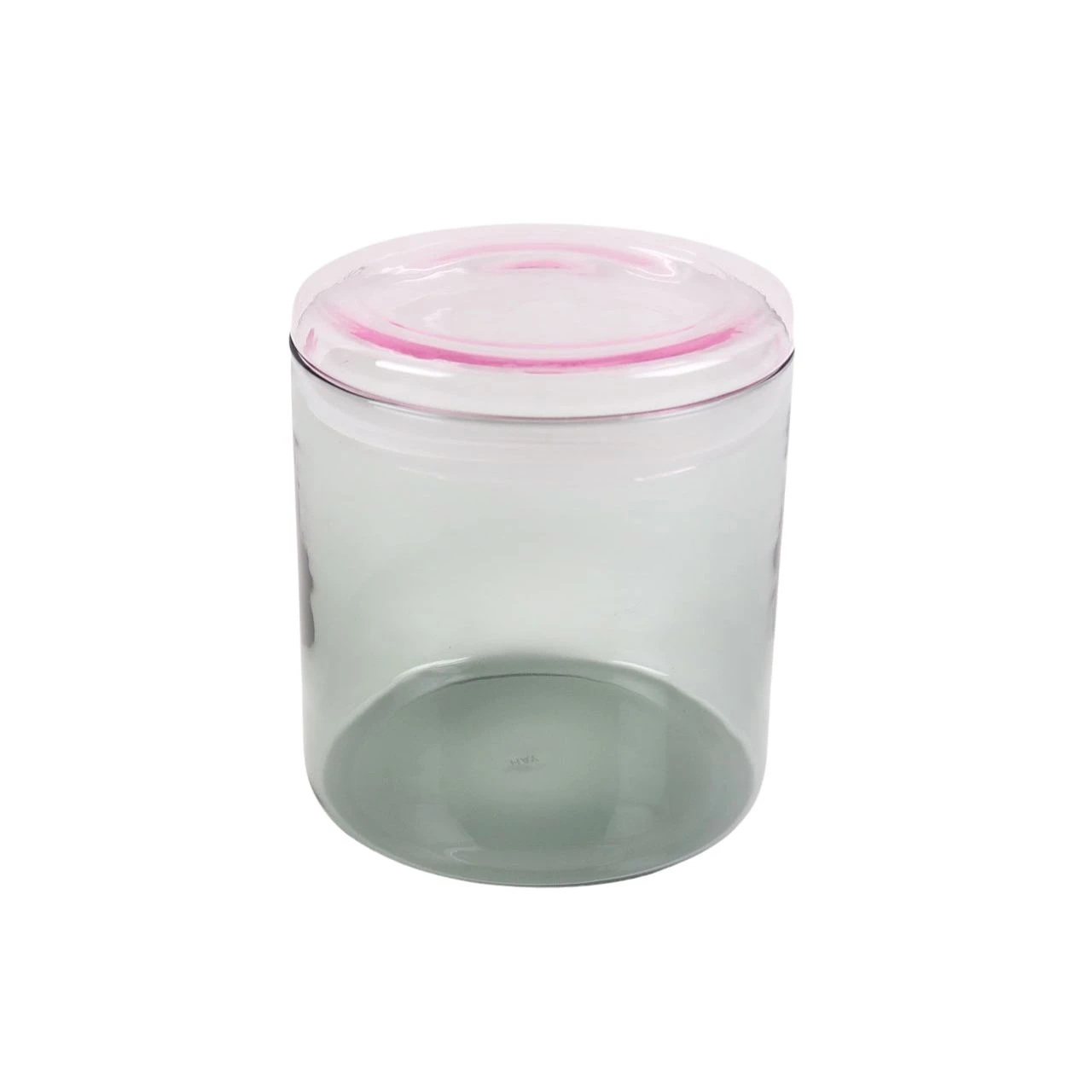 This jar is made from borosilicate glass. The body of the jar is a subtle grey colour while the lid is made from pink borosilicate glass. A useful storage jar in the kitchen or the bathroom. You could use it for coffee beans or tea bags in the former and cotton wool or buds in the latter.