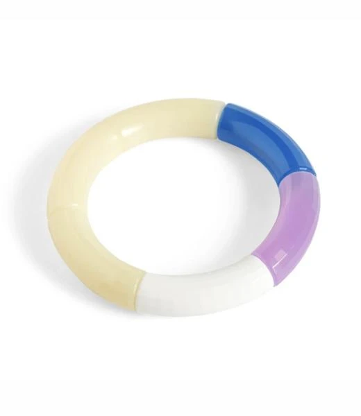 Kyoto Tango’s exclusive edition of colour-blocked resin bracelets for HAY fuse muted and strong tones to create a unique and versatile accessory. Designed and produced in Denmark, the bracelets are available in five different colour combinations that can be worn individually or stacked beautifully together. PRODUCT DETAILS Size W1 cm Diameter 8 cm Material Resin, elastane