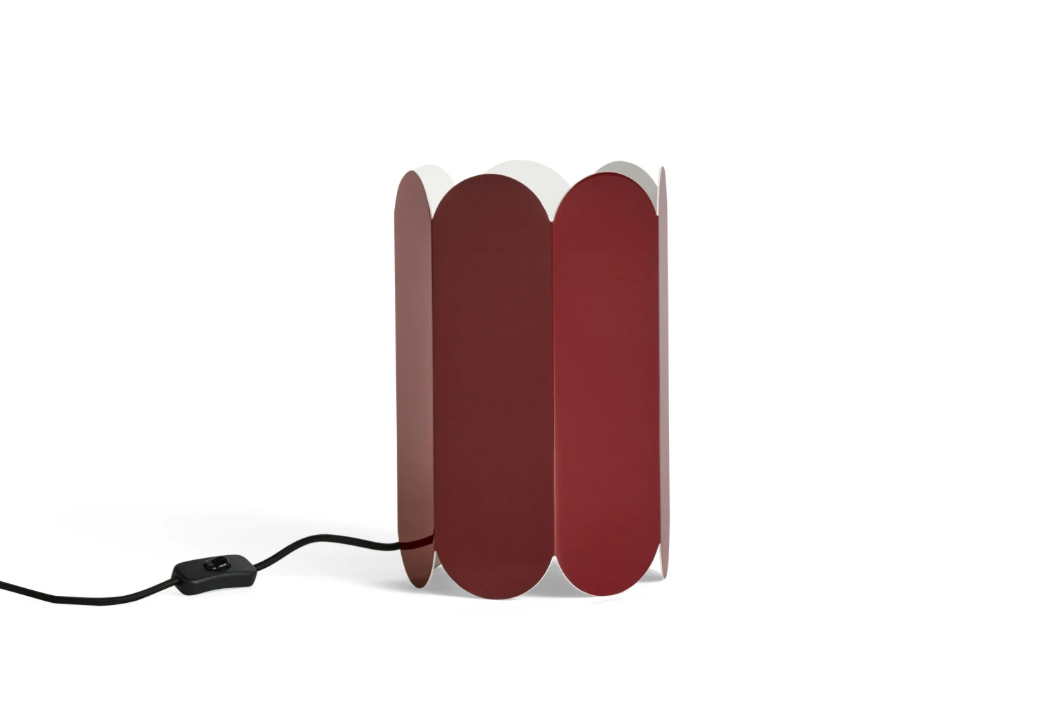 Arcs Shades are part of a series of arched designs created for HAY by Belgian duo Muller Van Severen. Formed from a continuous chain of curved arches that form a single element, the Arcs Shade creates a spatial volume that plays with light and shape. The shade can be used as a table lamp or pendant lamp suspended from the ceiling, both options forming contrasts in depth, colour and shape, resulting in an elegant scalloped silhouette. Crafted in steel, Arcs is available in several different colours or with a mirror surface. The cord sets for the shades are sold separately and are available in two designs – a table/floor variant with an in-line on/off rocker switch, and a pendant variant for ceiling lamps. The cord sets are not supplied with a bulb.