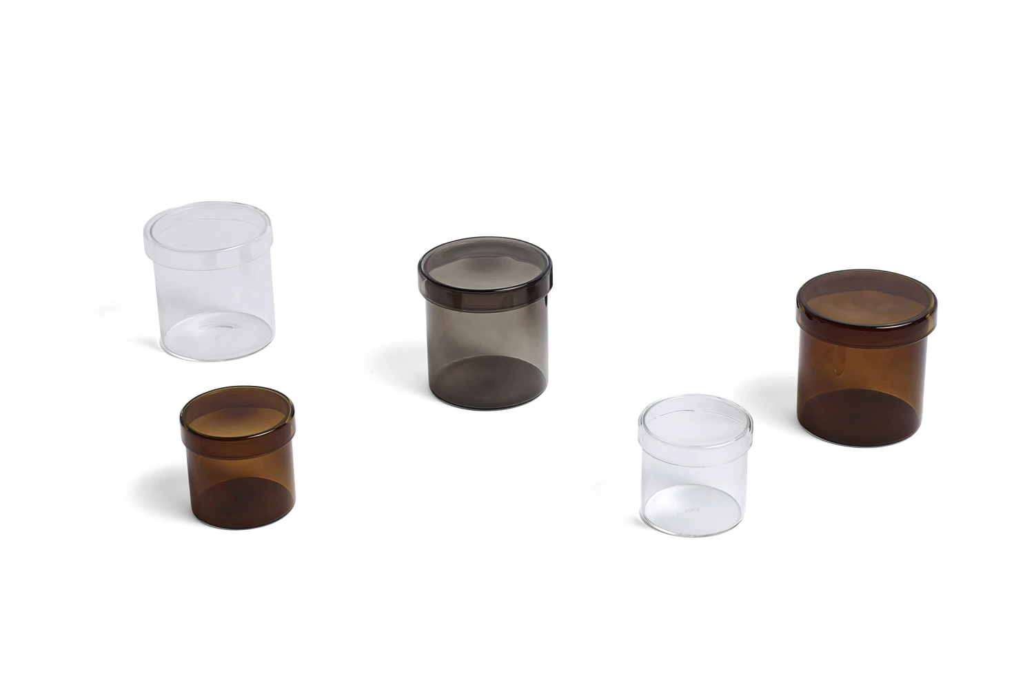 Hay’s rounded container is made of transparent, durable silicate glass and equipped with a lid. The glass jar can be used for storing small items in the kitchen, office, bathroom, etc. The jars are available in two sizes and three different tones.