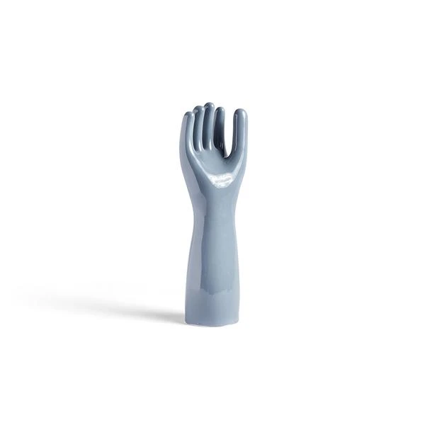 La main décorative couleur bleue de la marque Hay ♥ Un bel objet décoratif au design élégant et sculptural. Fabriqué en grès et fini à la main, chaque Deco Hand a une qualité artistique unique en son genre qui le rend parfait pour être exposé sur n’importe quelle table ou étagère de la maison. Ce produit est multifonctions, il peut être utilisé comme élément de décoration, ranger vos bijoux, etc. Cette main à la finition brillante, reflétera la lumière dans votre intérieur. Cette main est également disponible en couleur beige. L’avis de l’Atelier Kumo : apporter une touche décalée à votre intérieur ! Composition : grès Dimensions : longueur : 10,5 cm, hauteur : 38,5 cm Poids : 1,260 kg Couleur : bleu clair