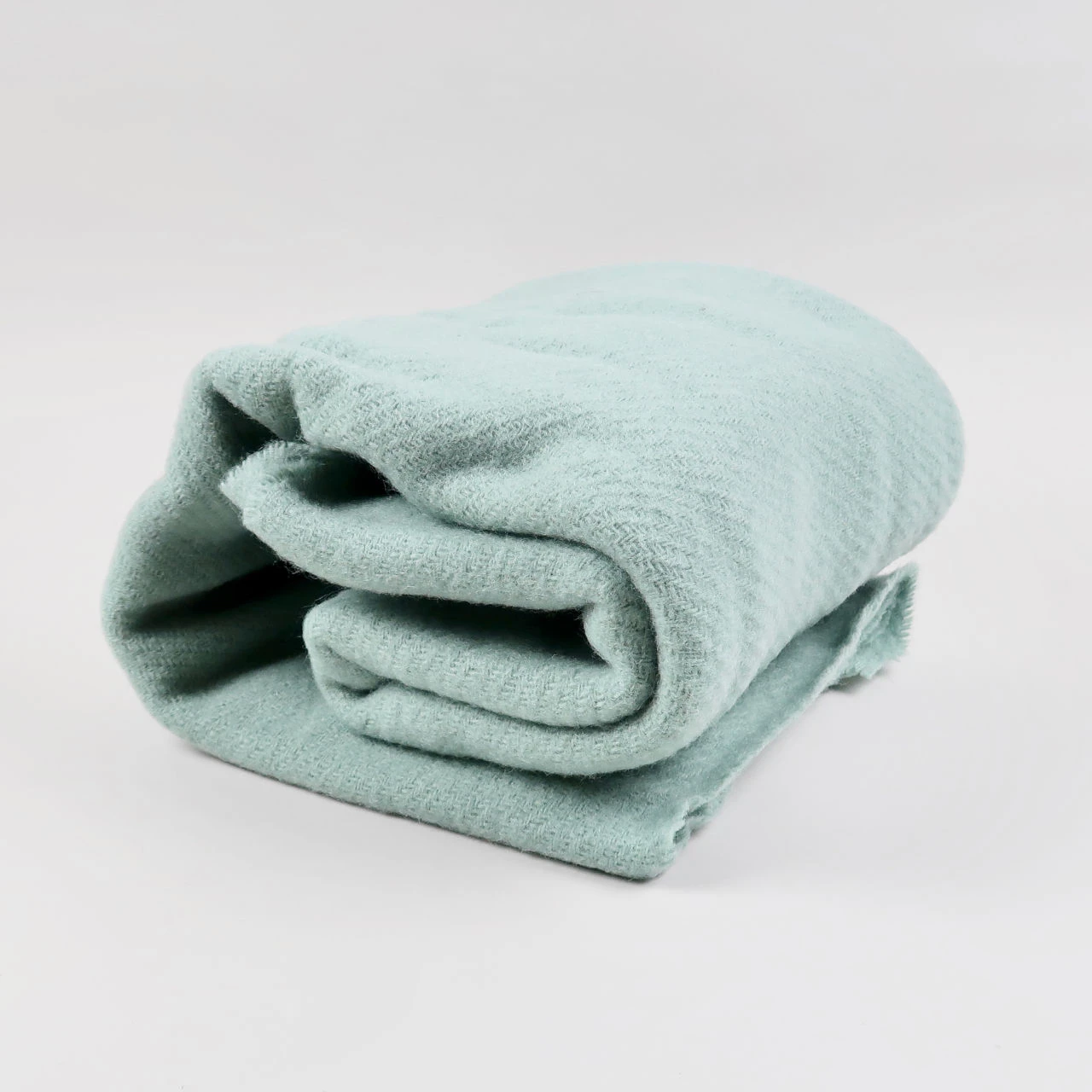 This single colour blanket by Danish homewares brand HAY is made from 100% new wool and is woven in Lithuania. The verdigris green is a really comforting pistachio green tone and the weave pattern gives it a suitable step or diagonal line pattern.