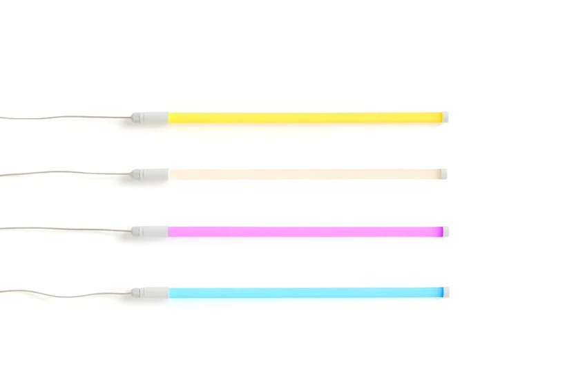 With its colourful glow, HAY’s Neon Tube enables you to create an artistic atmosphere in any space by hanging it or leaving it standing upright against a wall. Available in two different lengths in a variety of bright colours that can be used separately or as a multiple light installation. SIZE / 1.6 X L50 COLOUR / WARM WHITE MATERIAL / PC/PVC