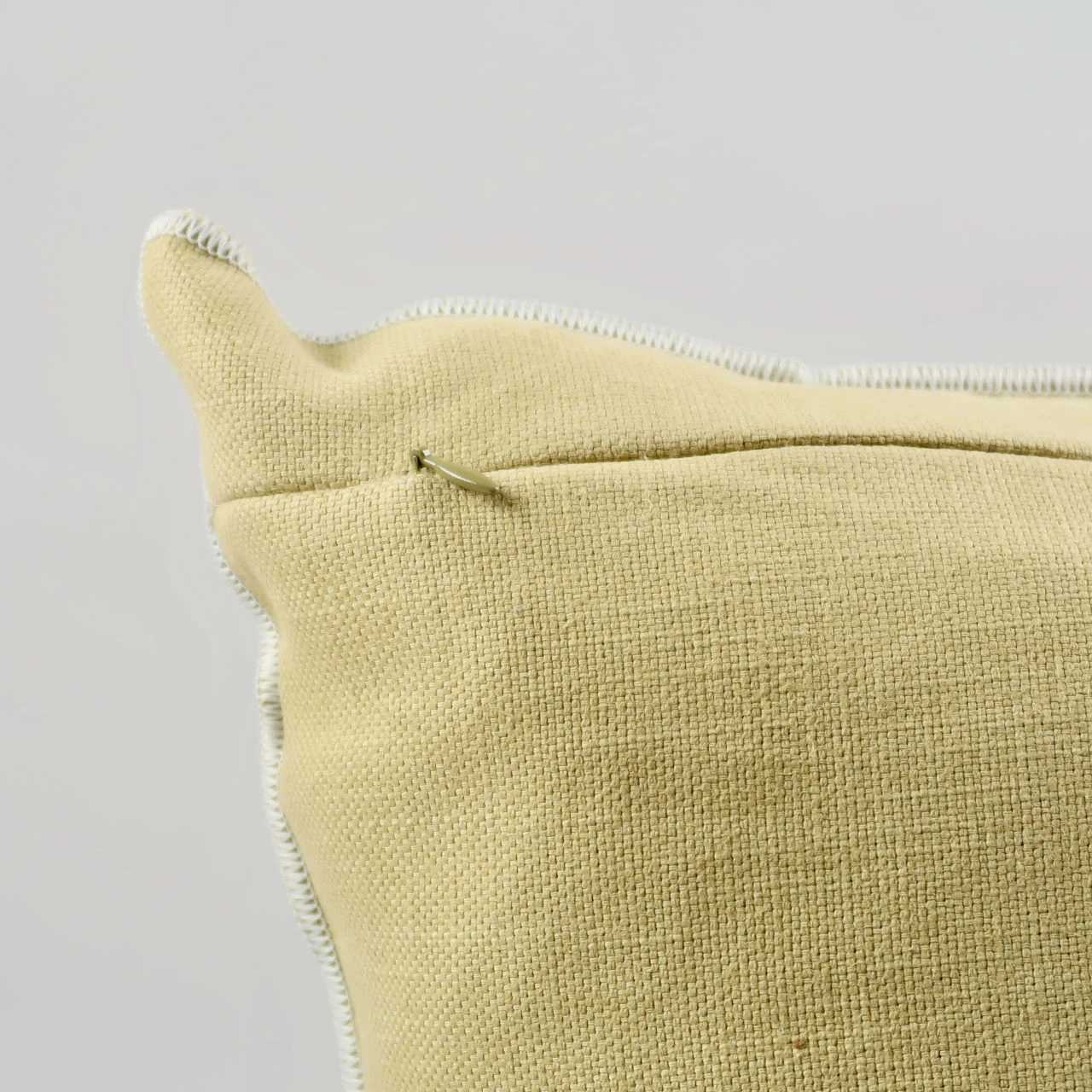This cushion is made by HAY and the external fabric cover is a 75% linen, 25% cotton mix. It has a hidden zip closure on the reverse of the cushion with a colour matched zip and a small discrete HAY logo tag on the reverse as well.