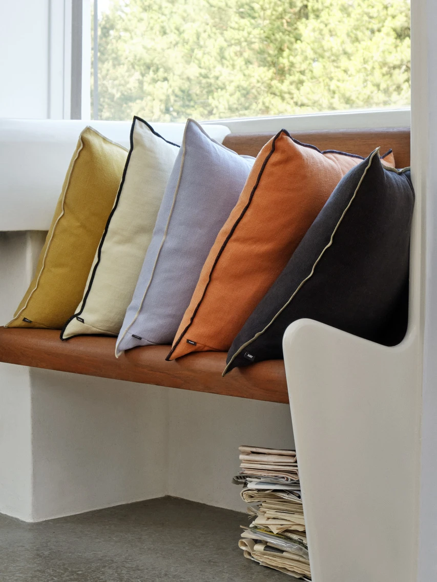 Made from a lovely mix of 50% natural linen and 50% cotton, the Grand Cushions offer an intriguing handfeel and confectionary of understated yet inspiring patterns and colour combinations. The various designs merge tradition with the contemporary, and lets you pair them together to suit any mood or setting.