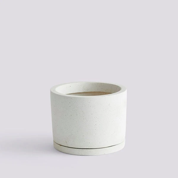 Plant Pot is a series of minimalist flowerpots with matching saucers by Danish brand HAY. They are made of lightweight and durable polystone and feature an inside coating for extra protection. The drainage hole at the bottom allows any excess water to escape into the saucer. Suitable for indoor and outdoor use, though not outside during winter months in freezing weather. Available in different sizes. SIZE: large: Ø19 x H14.5 XXL Ø24 X H22 COLOUR:GREY MATERIAL:POLYSTONE