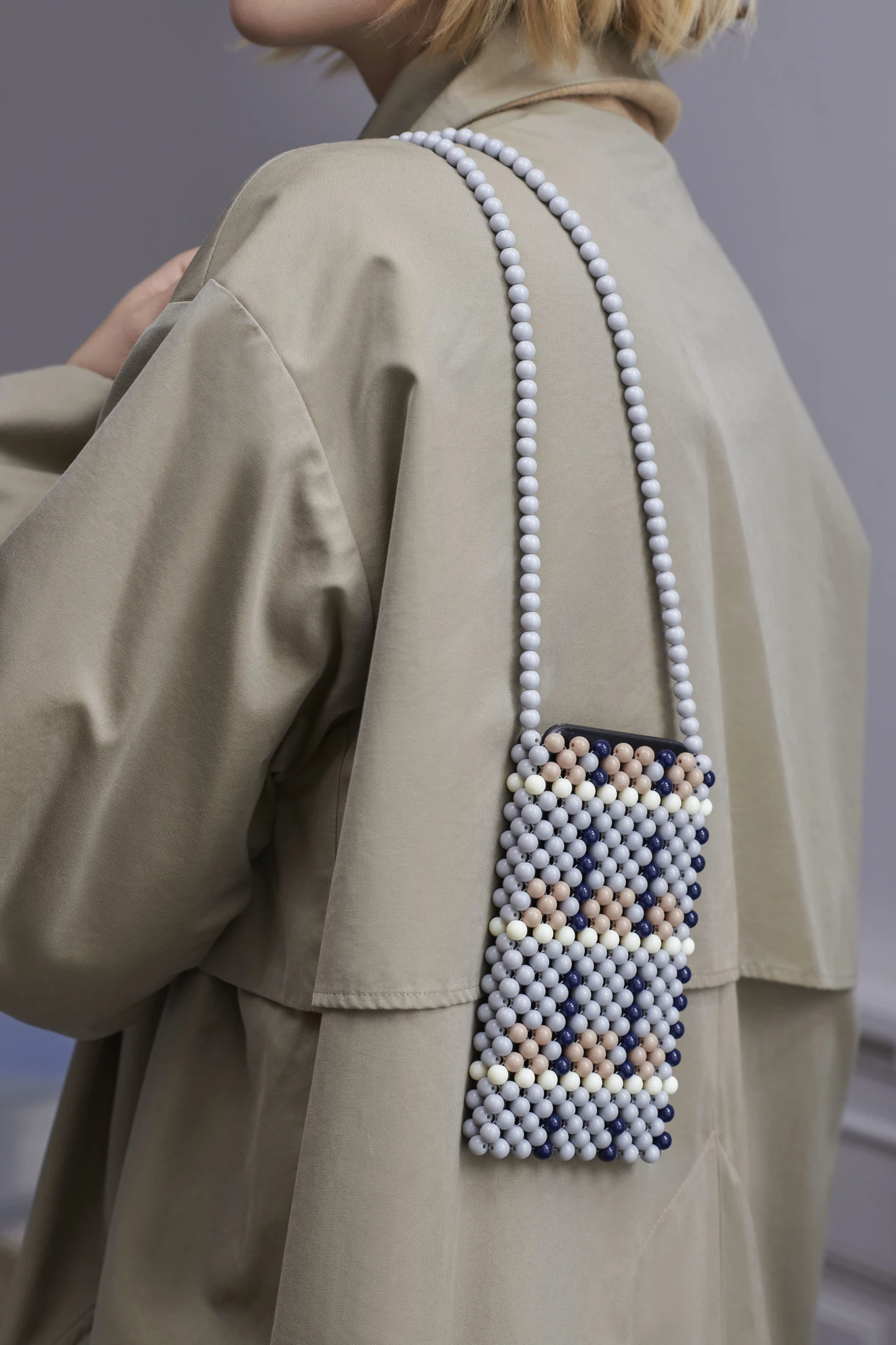 Designed for HAY by Ana Kraš, Perla is a unique and decorative phone holder made from miniature coloured beads that are hand threaded into beautiful patterns. Featuring a long shoulder strap, the holders can contain a wide variety of phones or other items. Also available in another design.