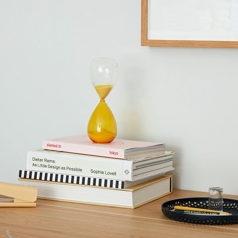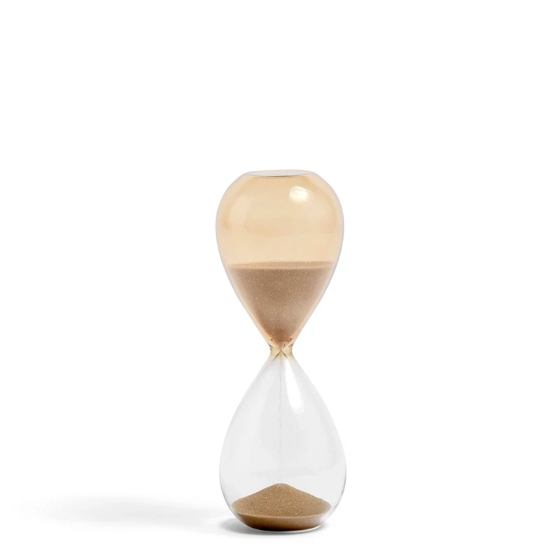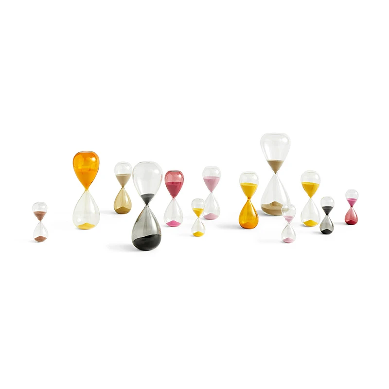 With its organic, soft shape and complementary combinations in clear and coloured glass with fine sand, HAY’s Time hourglass offers a contemporary twist on the classic hourglass timer.