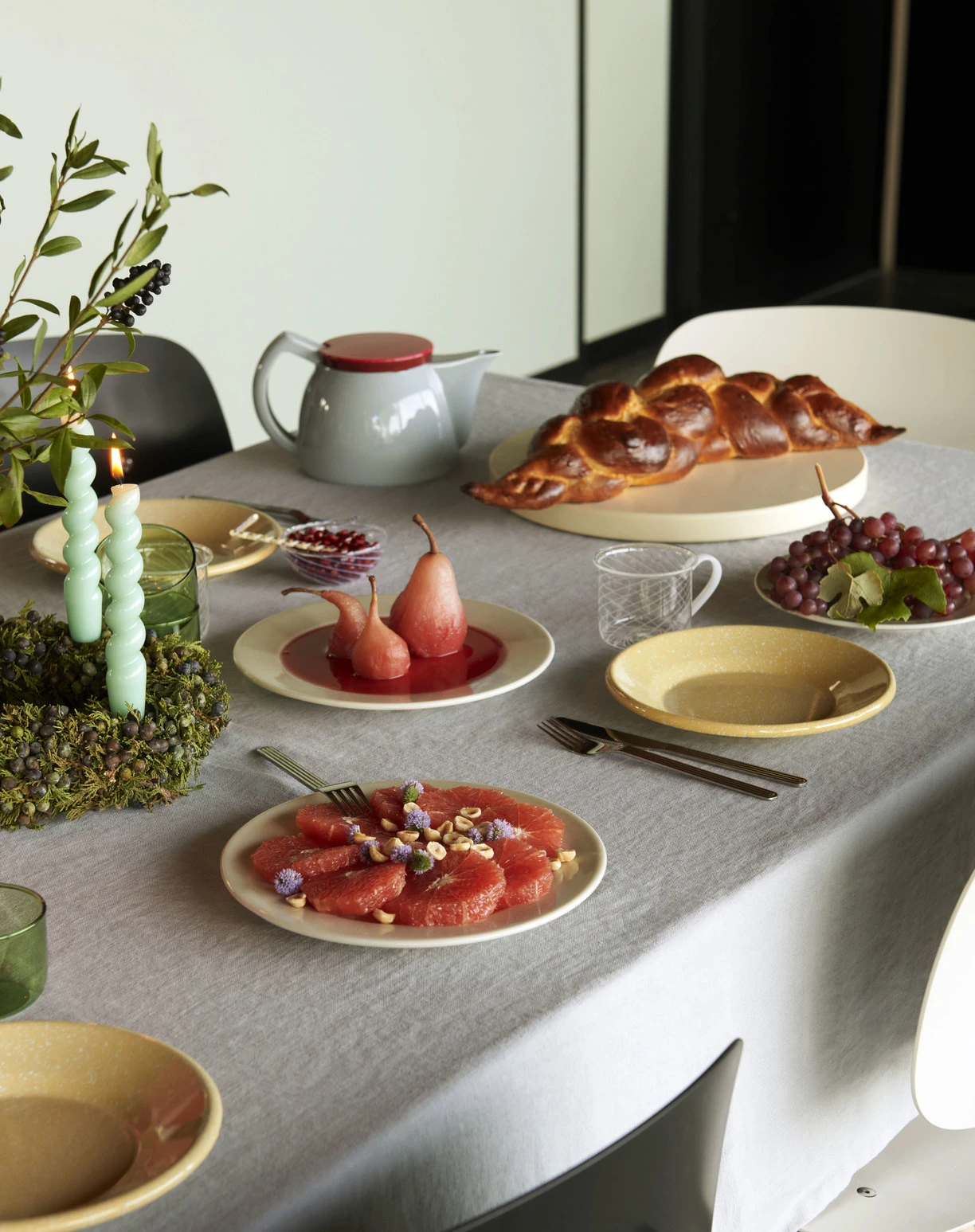 HAY’s Rainbow Plate series is made from durable porcelain with a slightly translucent coloured lacquer. Please note that colours may vary slightly from item to item due to the way they are glazed in production. This adds an individual, handmade feel to each item and creates greater depth of colour when used as a collection. Dishwasher safe.