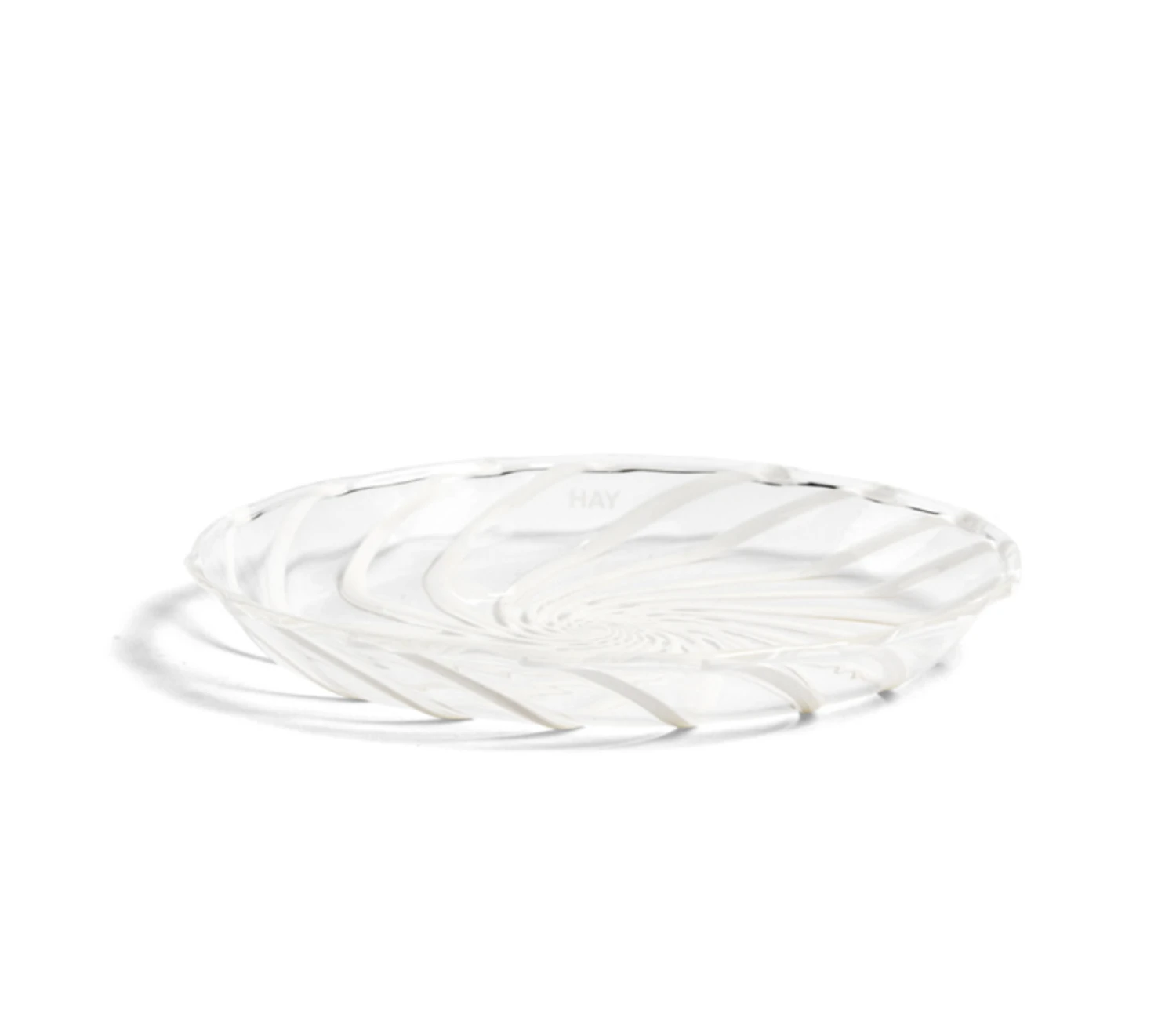 The HAY Spin saucers from borosilicate glass comes as a set of 2. Also in the colors clear-white or as a set of 2 bowls.