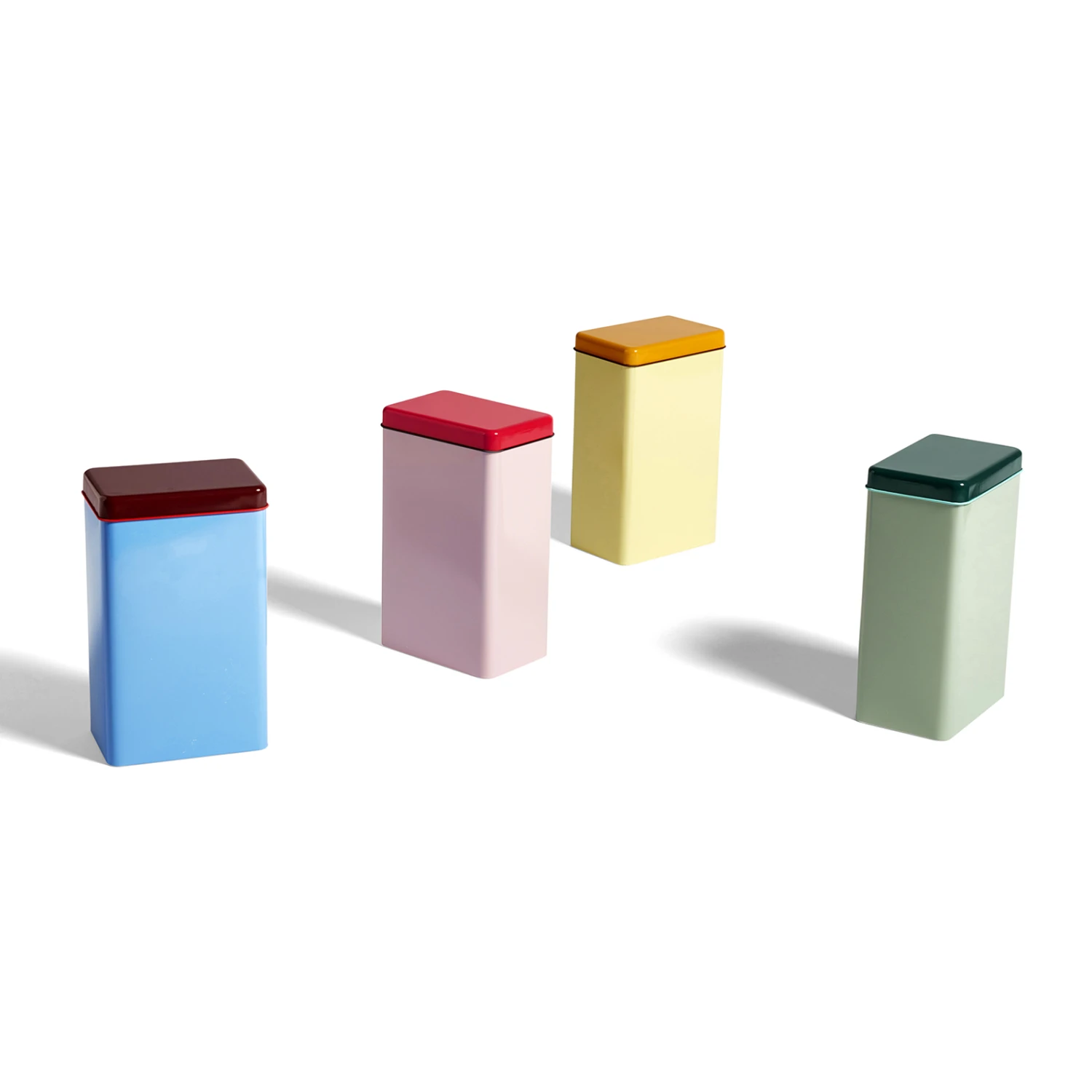 Designed by George Sowden, the Sowden Tin is a colourful tinplate container with an airtight lid that is suitable for coffee and other dry foods. Get the eye-catching four pale colours with this practical set.