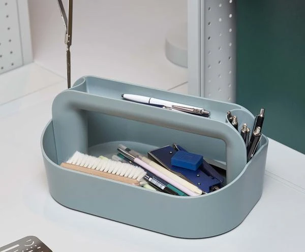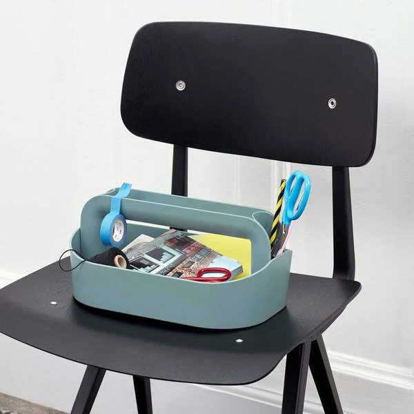 Esta caja de almacenamiento es un diseño de Shane Schneck para HAY, sus compartimentos laterales y en el asa lo hacen muy practico para tener el escritorio ordenado así como caja de herramientas u otras funciones… Su forma y color lo convierten en un objeto de diseño que queda genial en cualquier espacio. Plástico ABS 30.5 x 21 x 14.5 cm