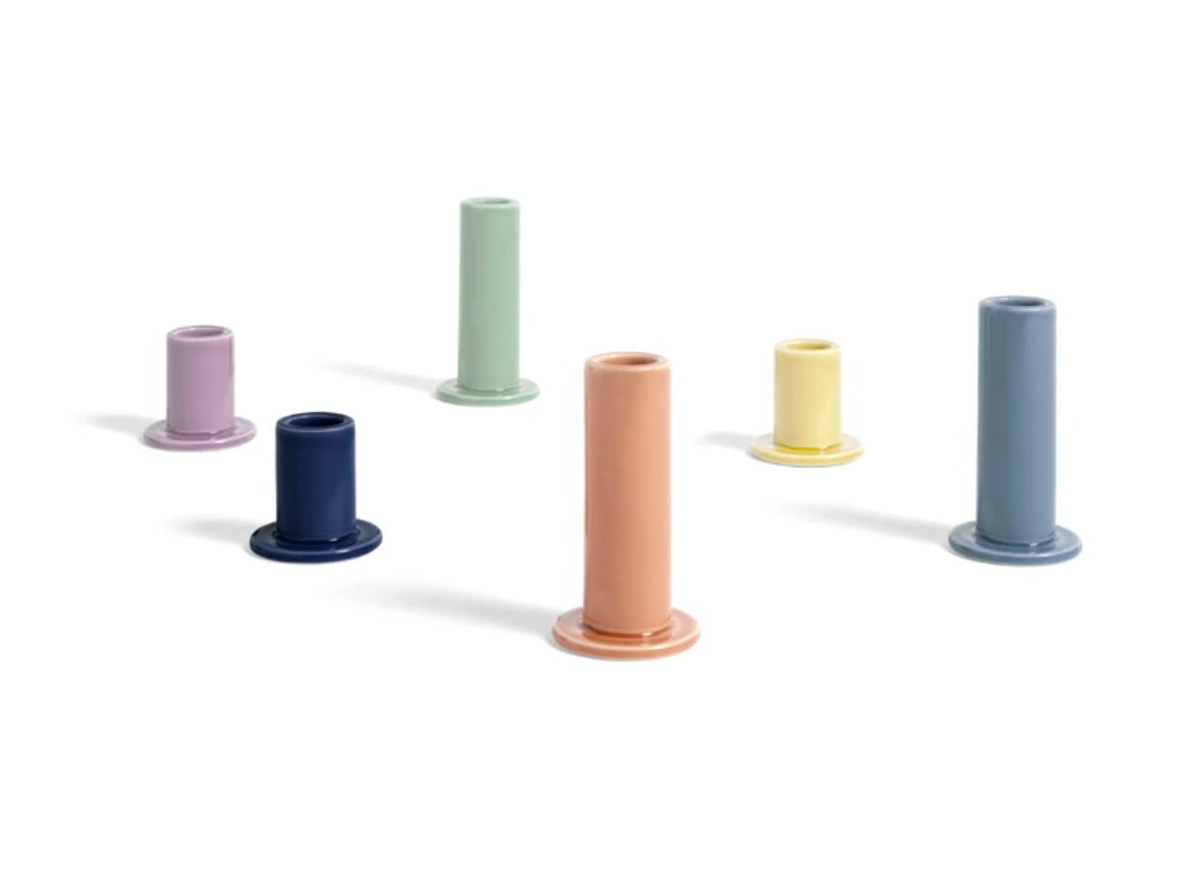 HAY’s Tube candleholder gives a candle a simple, charmingly coloured base. The Tube collection consists of glazed earthenware candleholders in a range of delicious colours – choose your favourite or combine different shades and sizes into a beautiful composition. The Tube candleholders are suited for most taper candles, which you can also find in HAY’s selection.