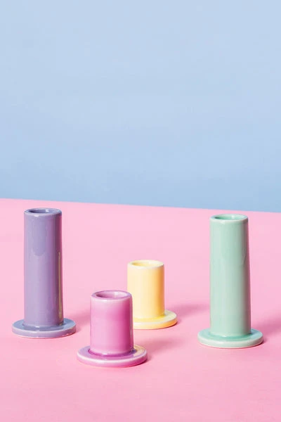 FROM: Denmark MADE: Portugal WHY WE LOVE: Crafted in earthenware with a semi-transparent glaze, the Tube Candleholder fuses a minimalistic tubular design with a muted palette. Designed to be used with HAY candles, the candleholder features a circular base that balances the design and catches any dripping wax. Available in different heights and colours, the candleholders can be used individually or grouped together in contrasting designs. Dimensions: 5.5 X H5 Materials: EARTHENWARE