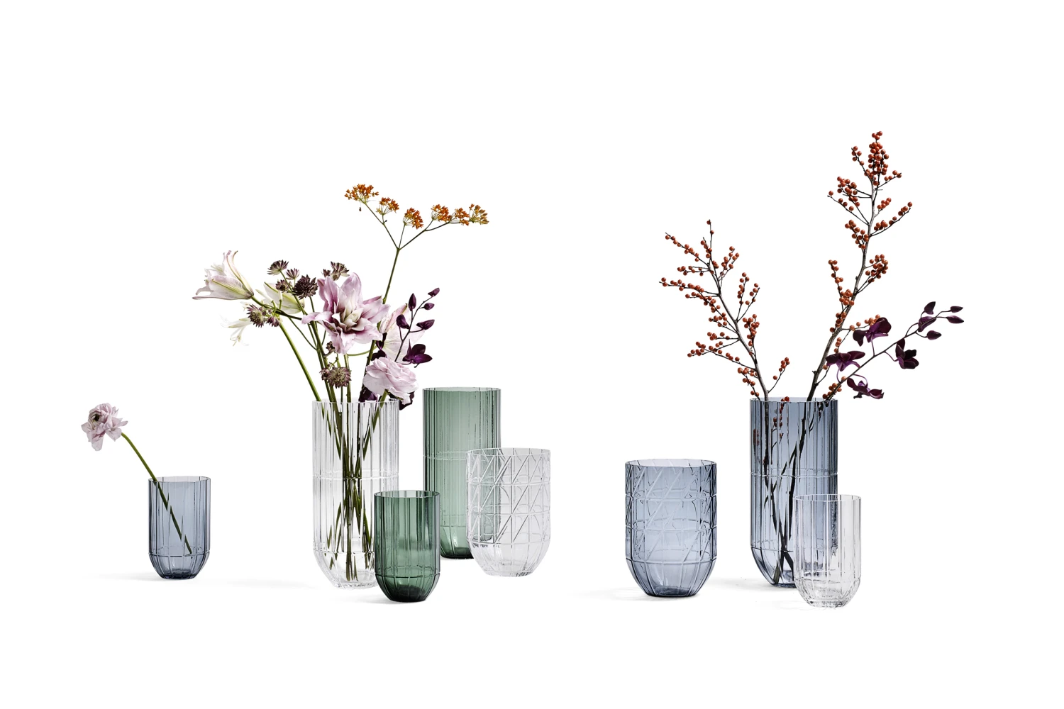 Beautiful curved forms with subtle lines create a warm and contemporary look. The glass vases come in different sizes to suit your floral arrangement requirements.