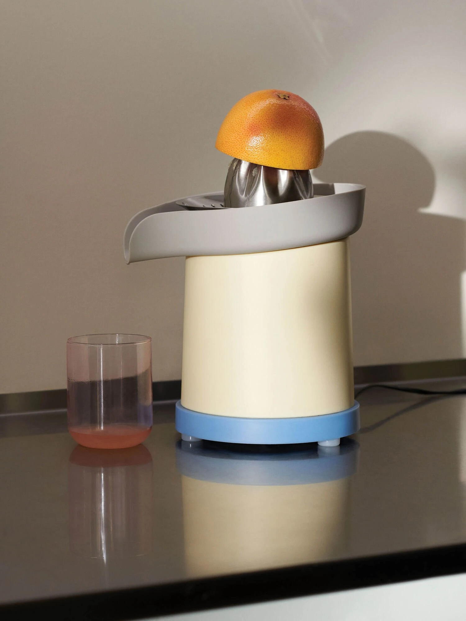 Featuring the same signature colors as the rest of HAY’s George Sowden kitchen collection, the Sowden Juicer brings function and color to any kitchen. The electric design effectively squeezes citrus fruits and effortlessly delivers fresh, pulp-free juice. The Sowden Juicer is made of durable plastic and stainless steel and is easy to disassemble and clean after use.